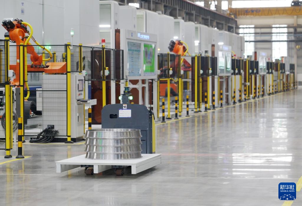 5月22日股票配资的,自动导引车在洛轴集团智能工厂生产线上作业。新华社记者 李嘉南 摄